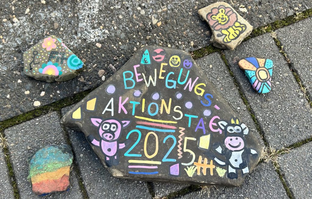 Ein besonderes Highlight waren wieder einmal die liebevoll bemalten Bewegungssteine, die auf dem Schulgelände und um die Schule herum verteilt wurden. Die kleinen Kunstwerke sollten nicht nur dekorieren, sondern auch zum Bewegen und Entdecken anregen.