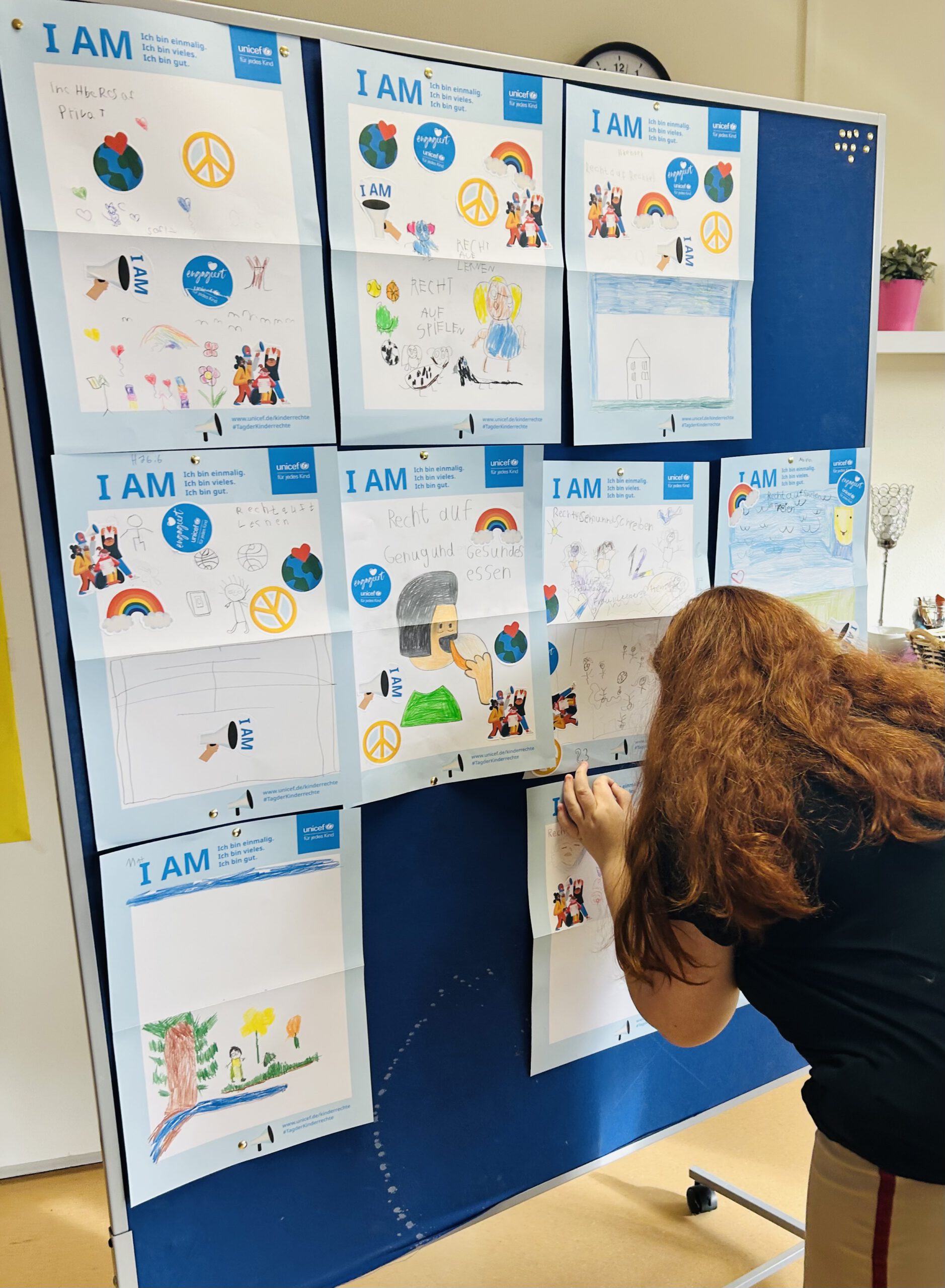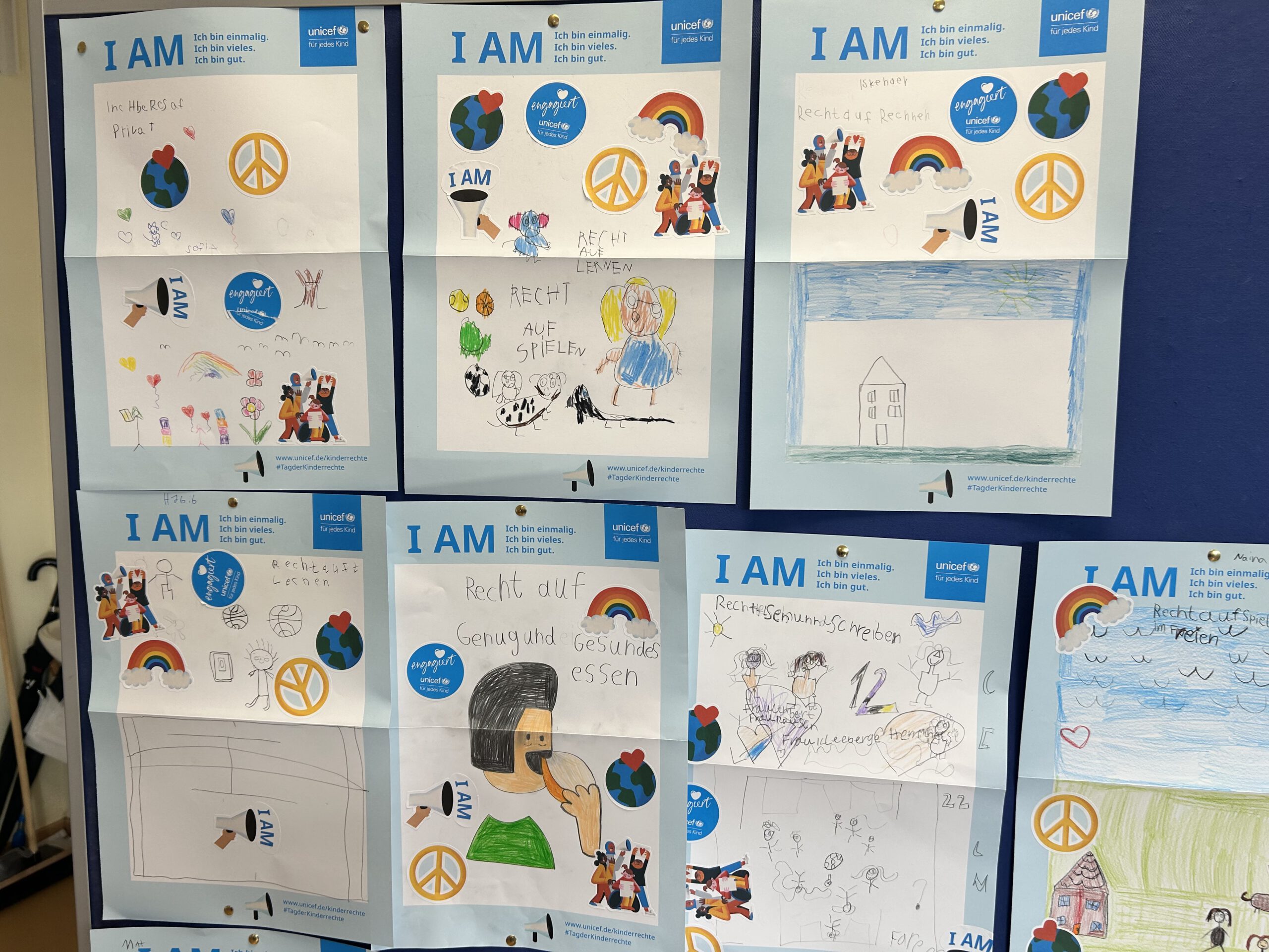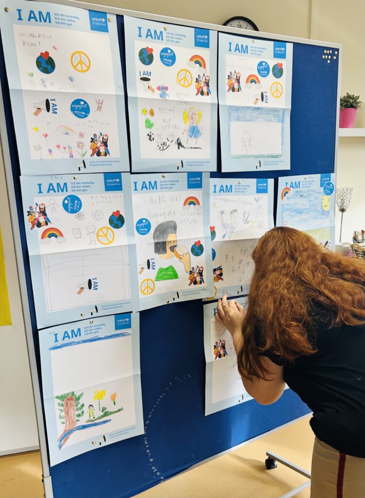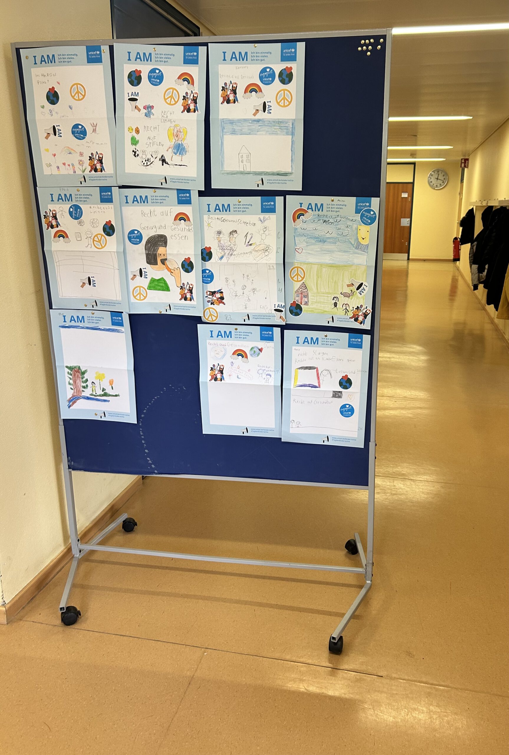 Am Schluss stellten sich die Schüler eine ganz persönliche Frage: Was kann ICH gut? Was macht MICH einmalig? Welche Rechte sind mir im Alltag besonders wichtig? Mit Hilfe des Materialpakets von Unicef gestaltete jeder ein eigenes Plakat zu diesen Fragen. Die entstandenen Werke wurden im Schulgebäude ausgestellt, um auch andere Klassen auf das wichtige Thema aufmerksam zu machen.