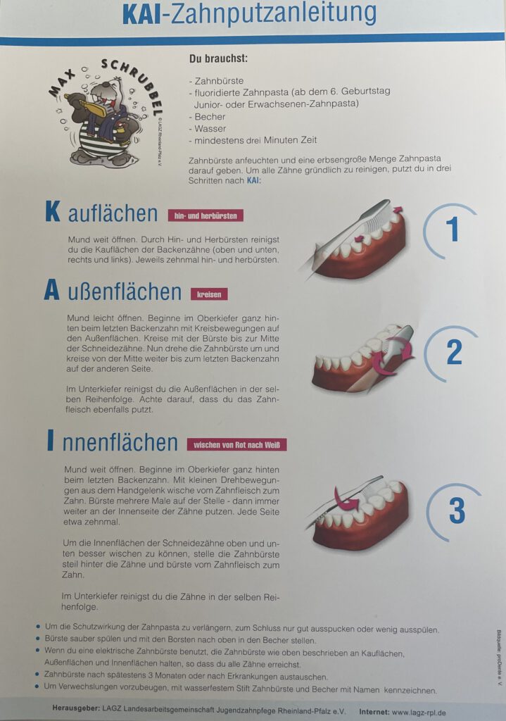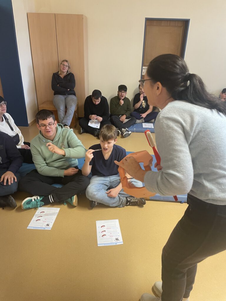 Für die älteren Schülerinnen und Schüler fand zusätzlich ein informativer und praxisnaher Vortrag rund um das Thema richtiges Zähneputzen statt. Dabei lernten sie die bewährte Zahnputzregel kennen: