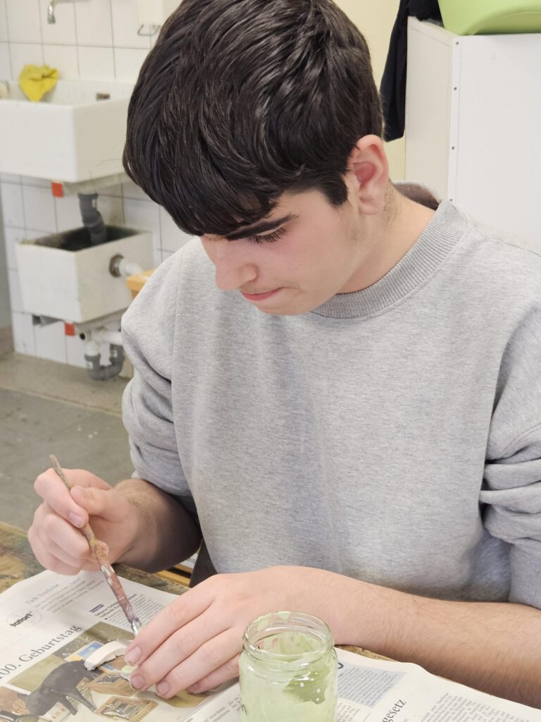 Im Werkunterricht entwickeln die Schüler*innen ihre Fähigkeiten beim Sägen, Schleifen und Ölen, um hochwertige Fotoleisten, Aufsteller und Geldgeschenkehalter aus Holz zu fertigen. Sie bekleben Stabkerzen und Reagenzgläser mit passenden Schriftzügen, so erhält jeder Geschenkartikel seine Individualität für jeden Anlass, egal ob als kleine Alltagsfreude, Weihnachts- oder Geburtstagsgeschenk. Im Töpferunterricht erweitern sie ihre handwerklichen Kompetenzen beim Töpfern, Glasieren und Brennen, um attraktive Magnete und Anhänger im Blumendesign oder als Glücksbringer aus Ton herzustellen. Zudem wickeln die Schüler*innen hübsche Metallringe mit Garn, und verschönern diese anschließend mit Trockenblumen.